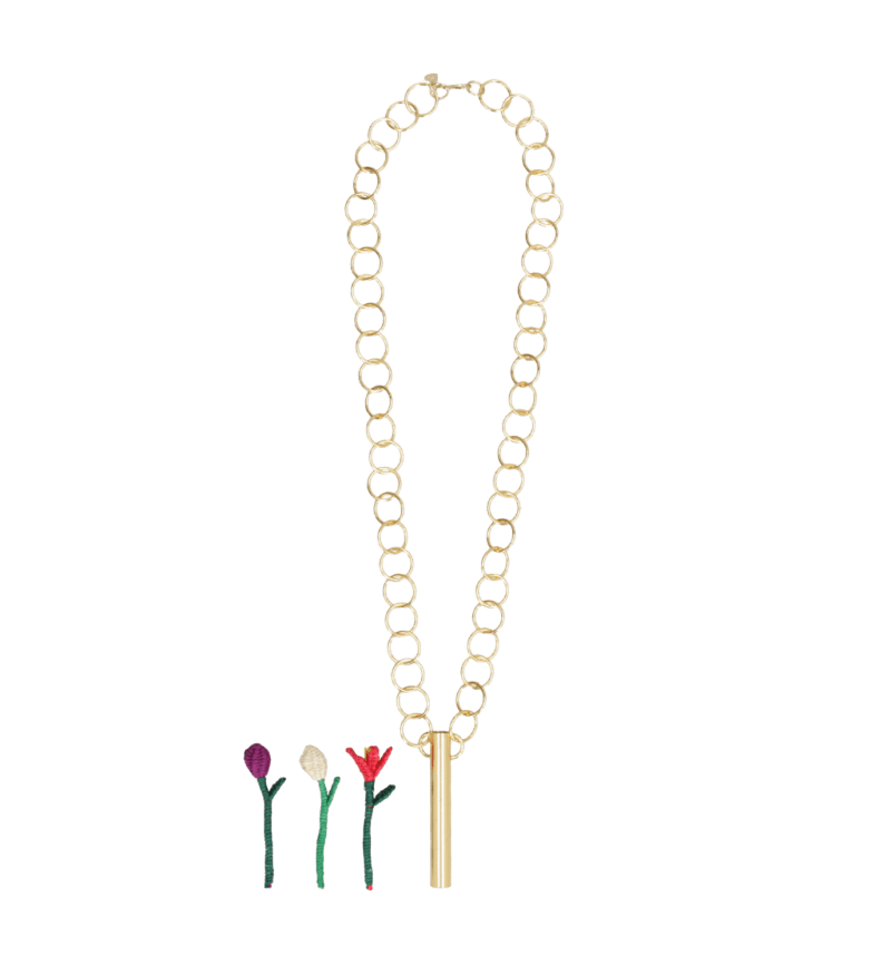 El Collar Rosa va a ser tu nuevo accesorio favorito. Puedes cambiar la flor que pones dentro cada día, según la temporada, tu pinta o tu energía. Un accesorio lleno de posibilidades y diversión.