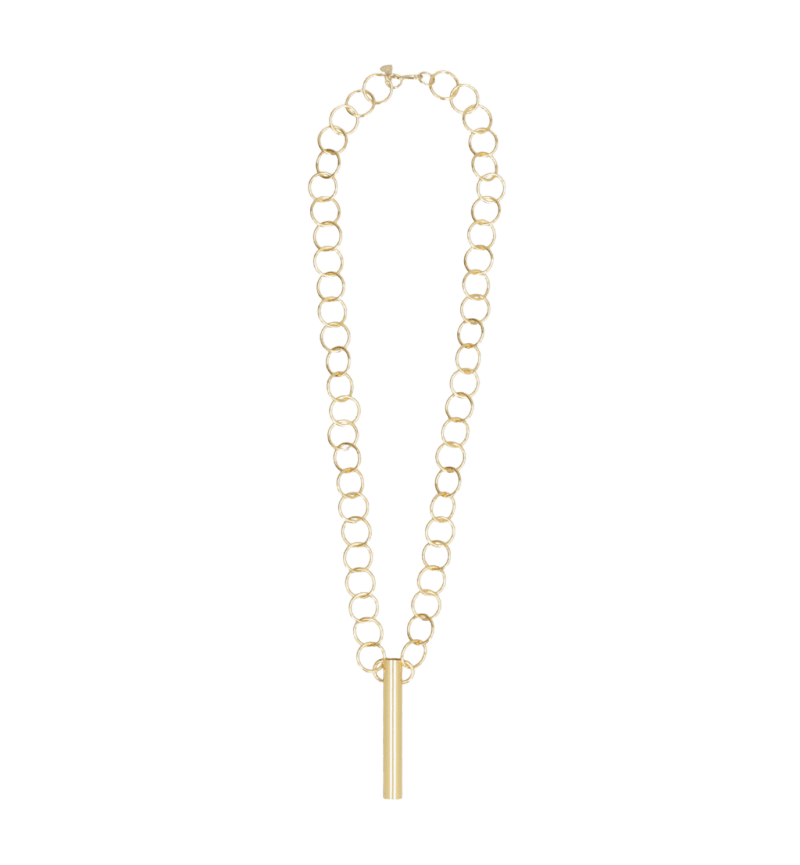 - Cadena martillada a mano hecha en bronce con baño de oro de 64 cm